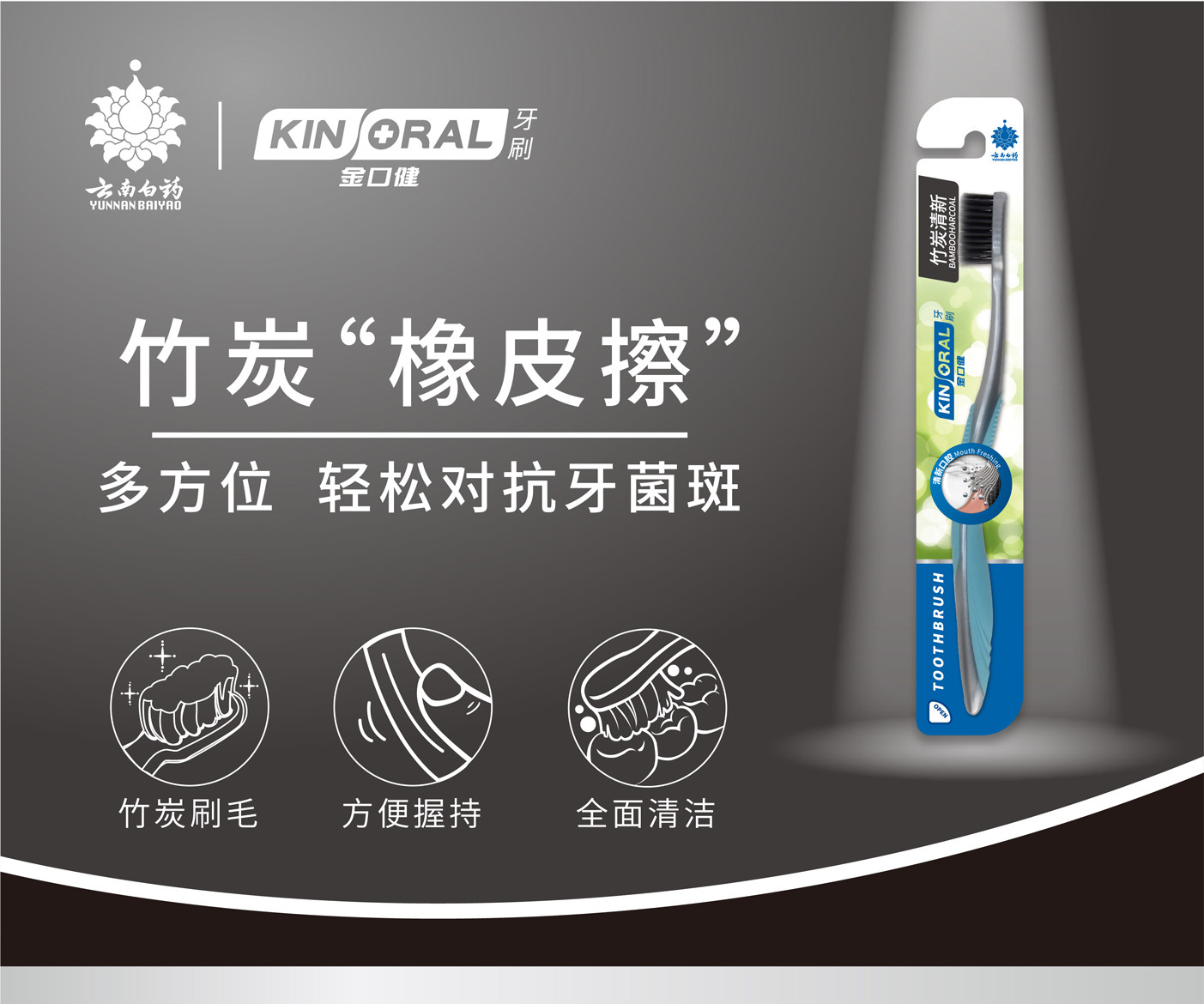 云南白药金口健牙刷软毛竹炭