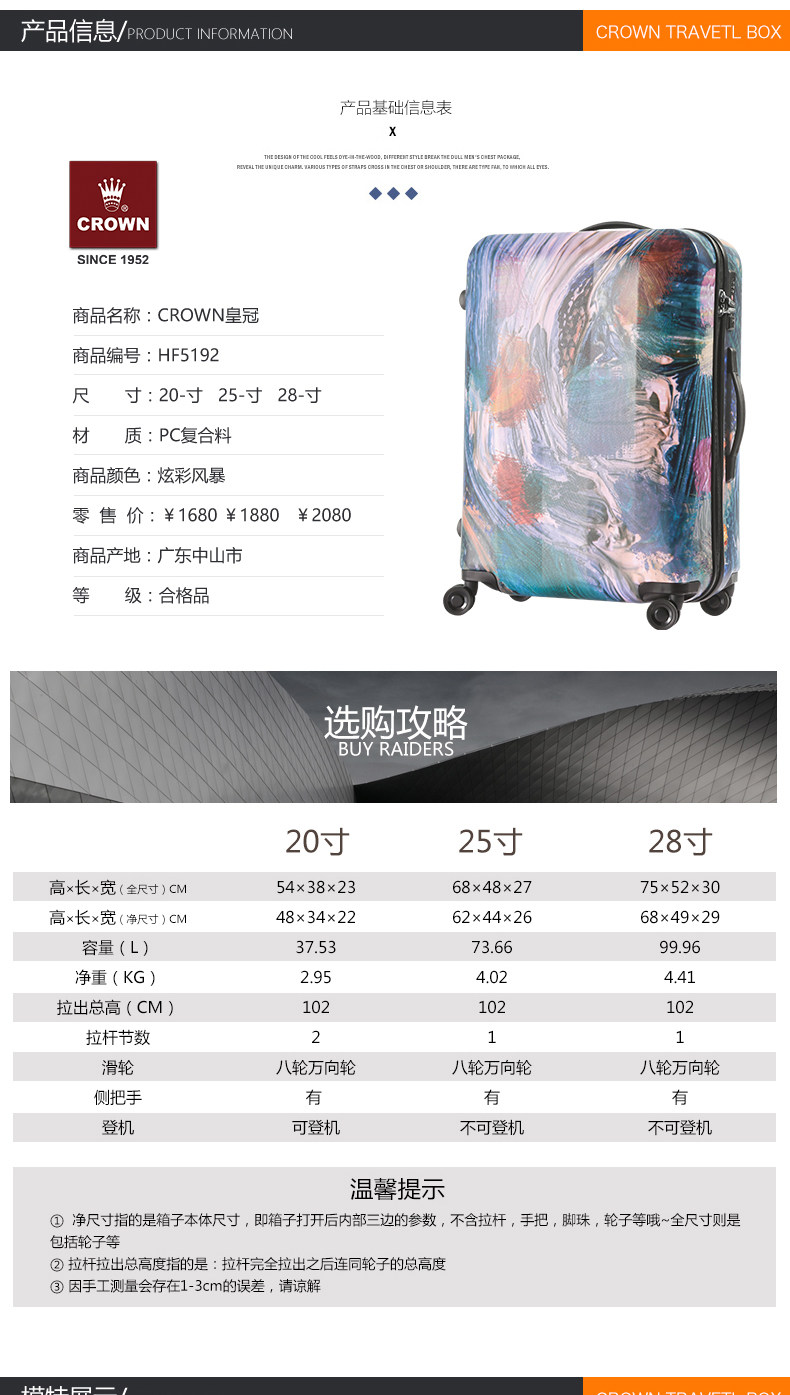 CROWN/皇冠硬箱八轮万向轮 旅行箱20寸
