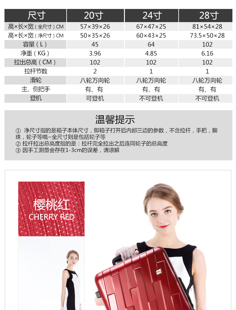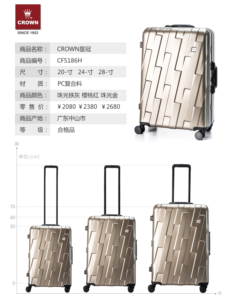 皇冠窄框旋转锁拉杆箱24寸 x1