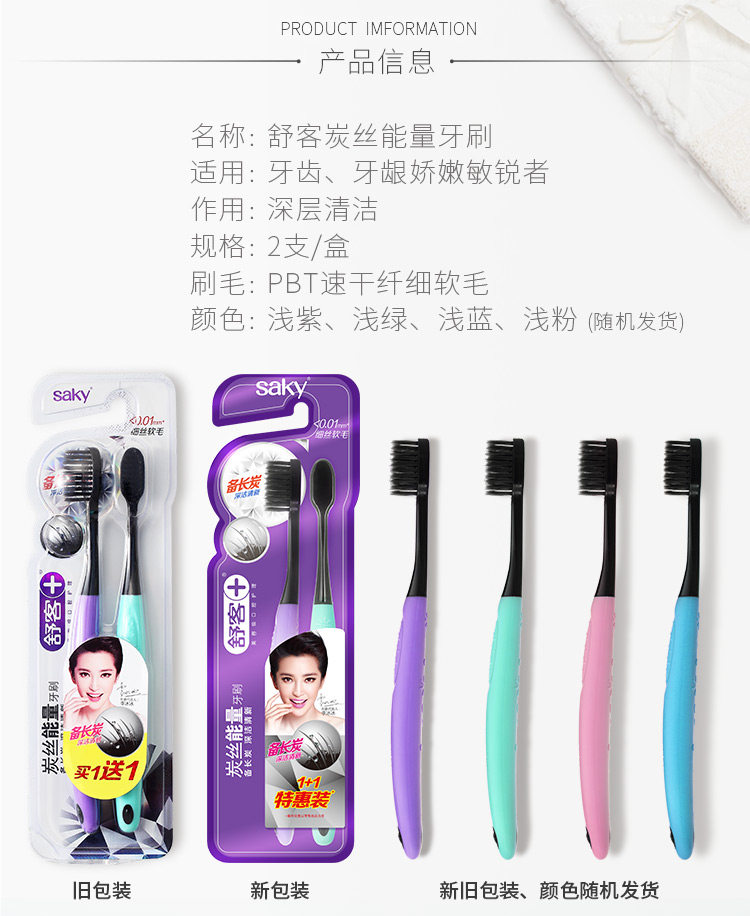 舒客舒克炭丝能量牙刷 2支 x1