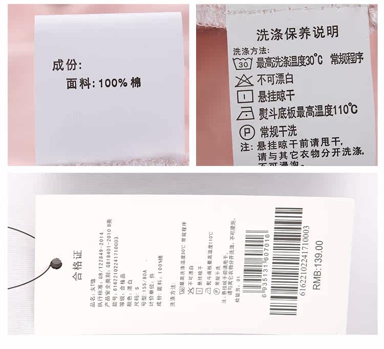 尺码 S M L XL 号型 155/80A 160/84A 165/88A 170/92A 胸围(cm) 100 104 108 112 肩宽(cm) 54 56 58 60 后中衣长(cm) 54 56 58 60 袖长(cm) 13.5 14 14.5 15