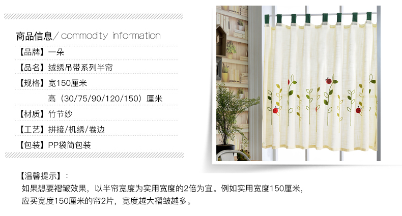 咖啡帘美式窗帘 宽1.5*高1.2 x1