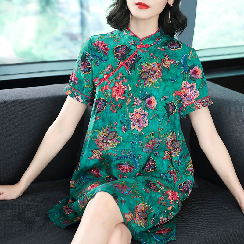 主芙真丝复古连衣裙
