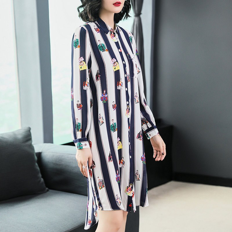 主芙真丝连衣裙长袖