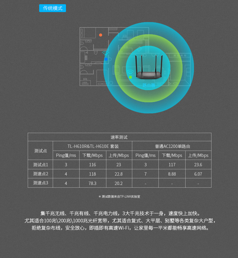 TP-LINK双千兆子母无线路由器 TL-H610R