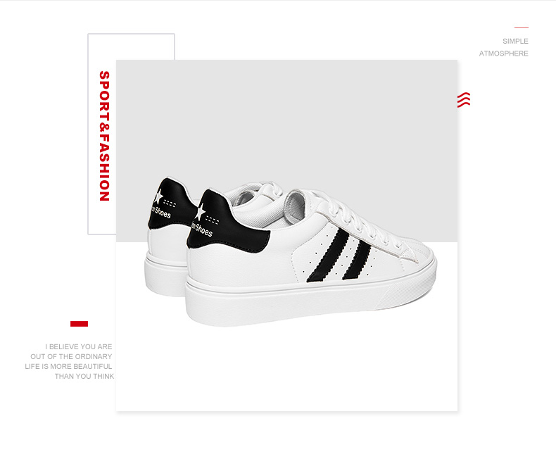 奥康(Aokang)休闲系带条纹简约平底小白鞋运动板鞋