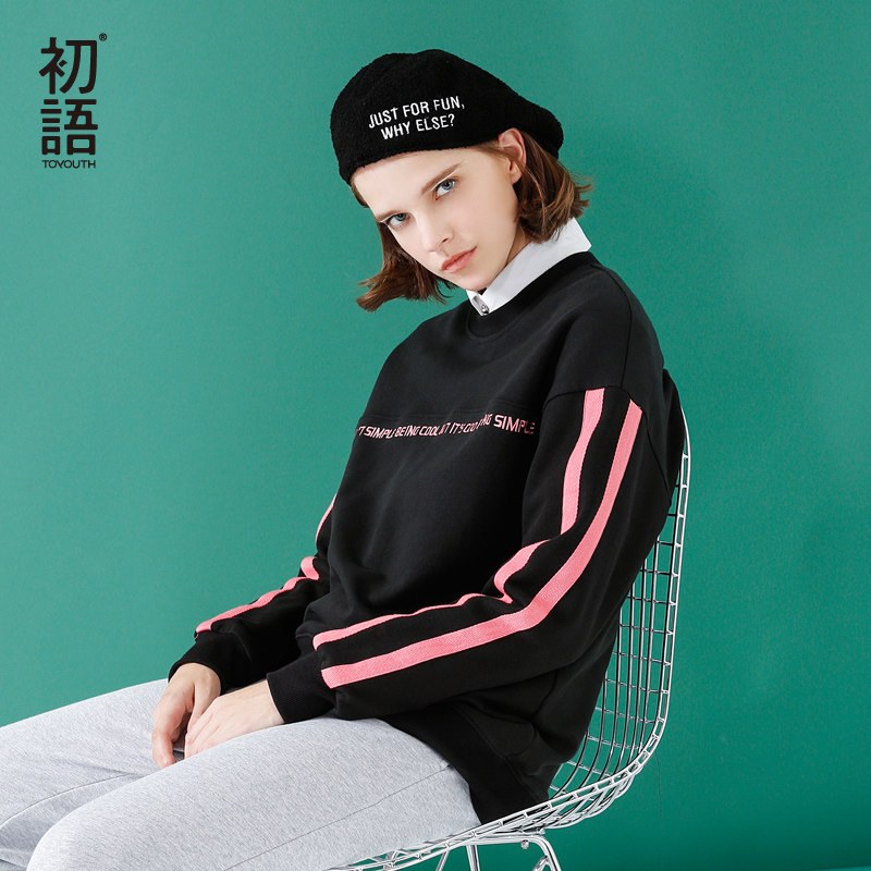 初语圆领印花卫衣女