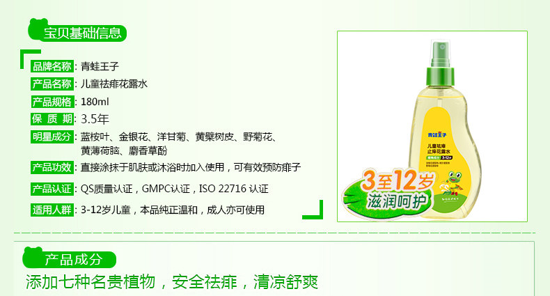 青蛙王子宝宝祛痱喷雾花露水 180ml