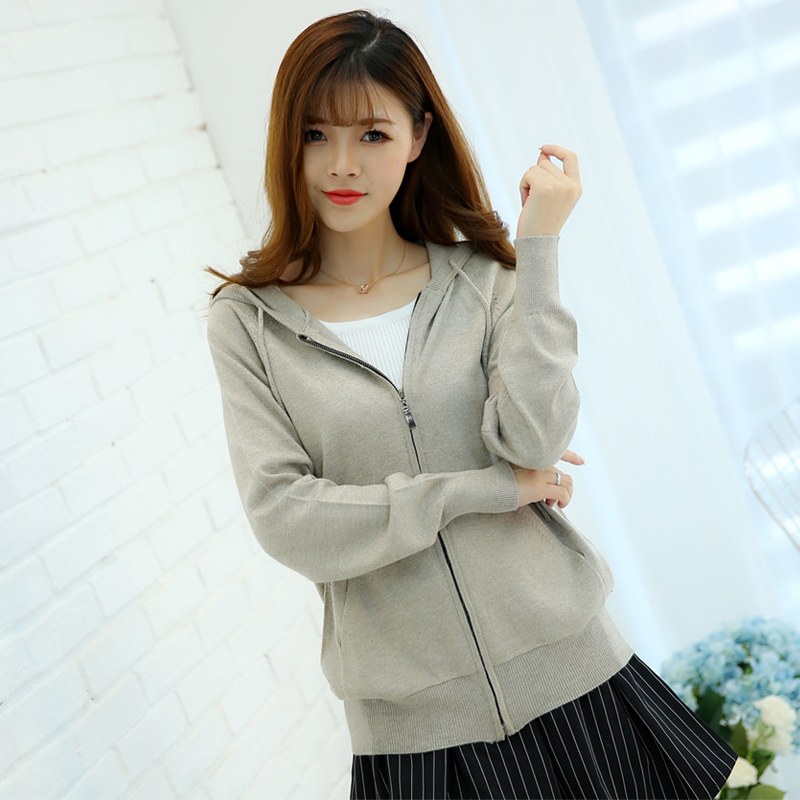 衣点墨拉链开衫连帽外套女