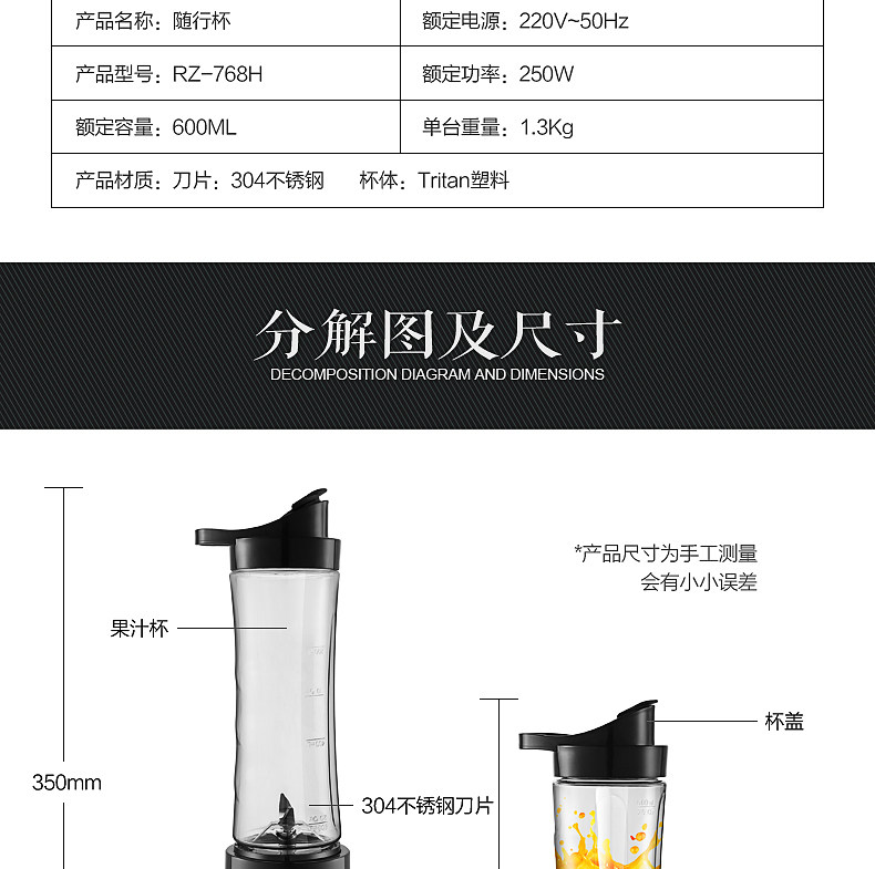 荣事达RZ-768H榨汁机迷你家用果汁机 x1