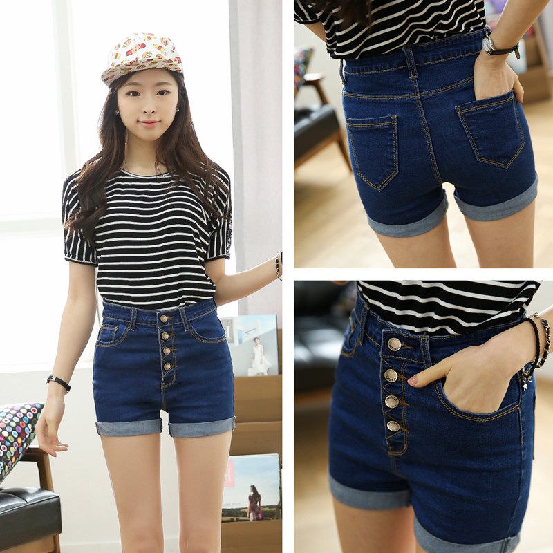 艾莲奴高腰牛仔短裤排扣