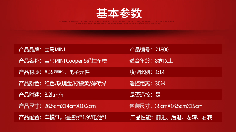 宝马MINI电动遥控车儿童玩具遥控汽车宝马车模型1:14