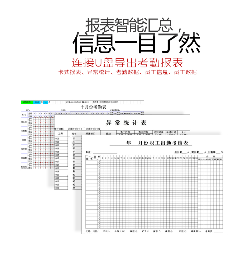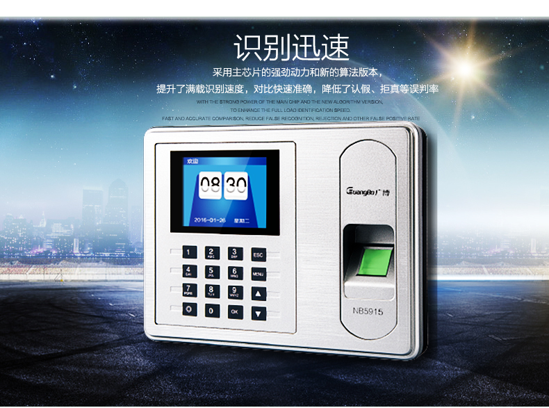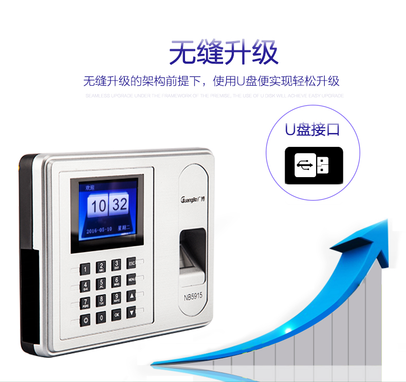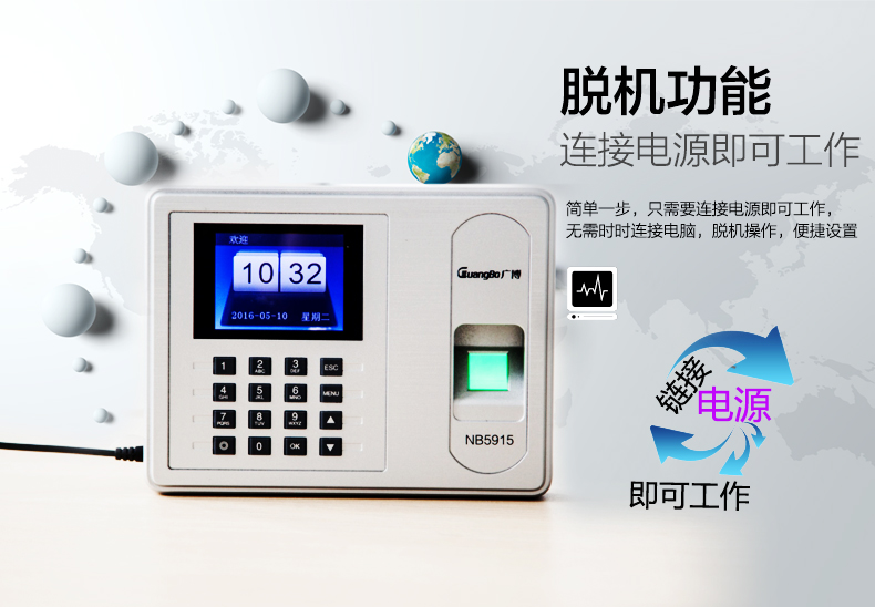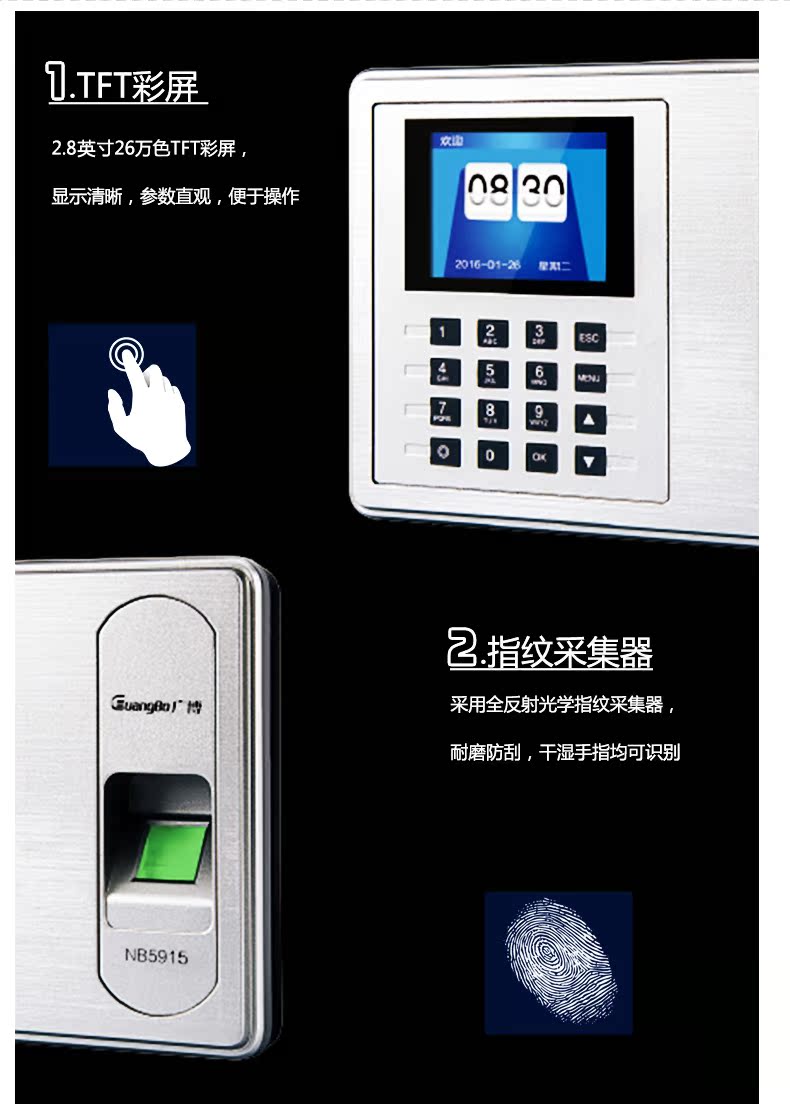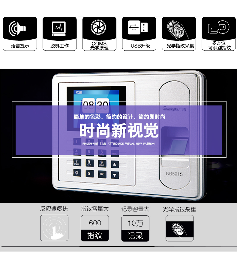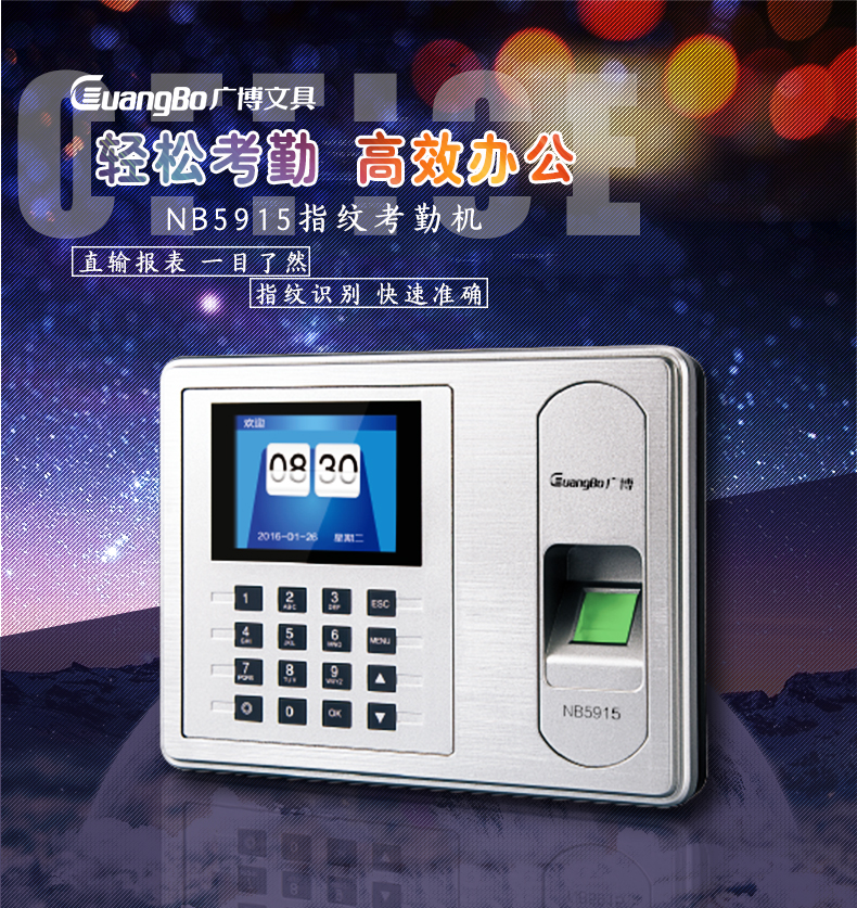 广博指纹考勤机打卡一体机600枚10W条彩屏U盘导出简易安