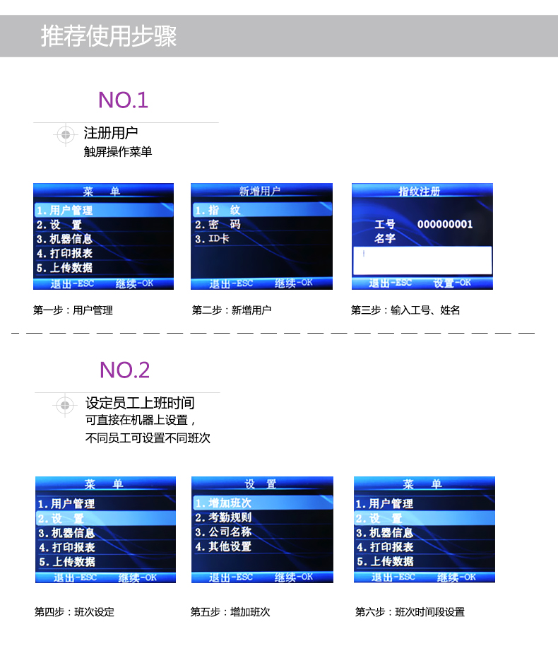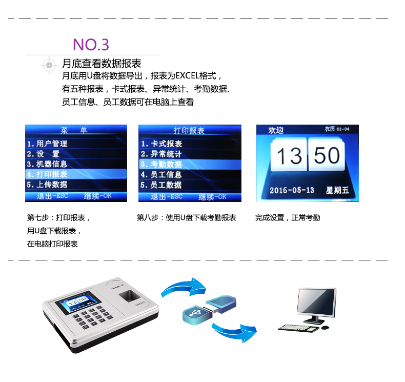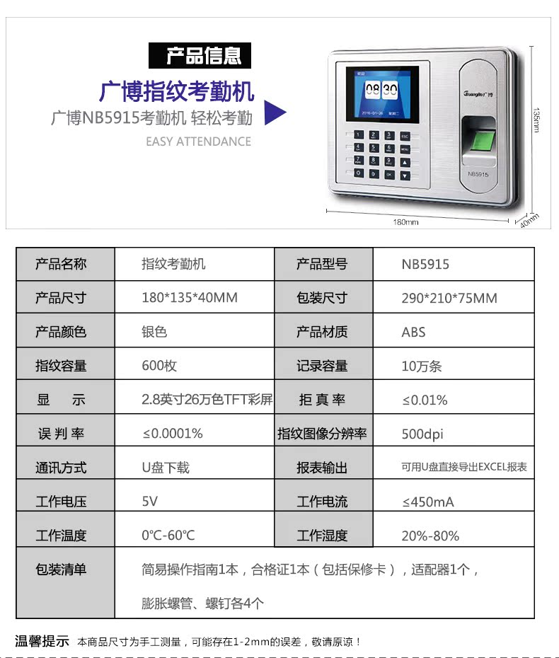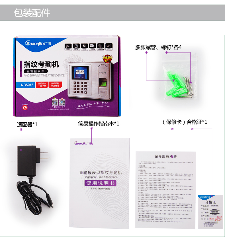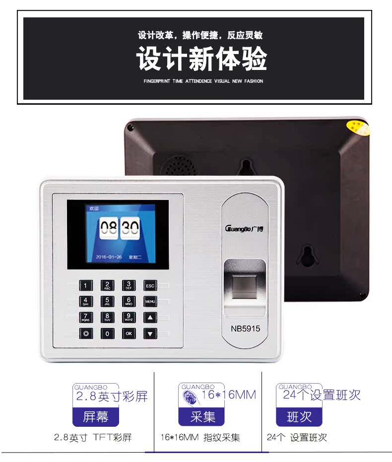 广博指纹考勤机打卡一体机600枚10W条彩屏U盘导出简易安装