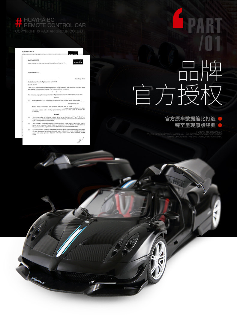 帕加尼仿真可开门充电遥控汽车儿童玩具车遥控车