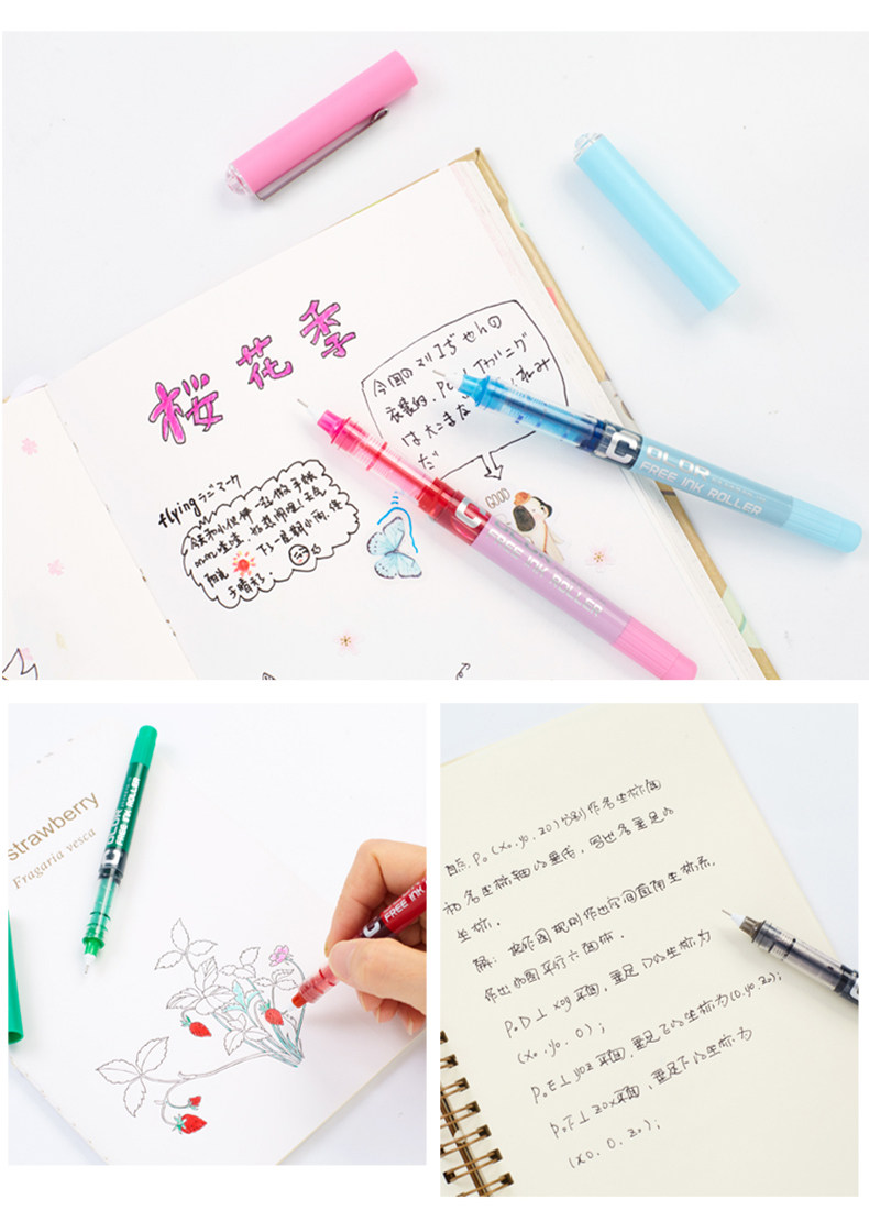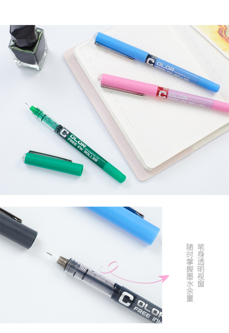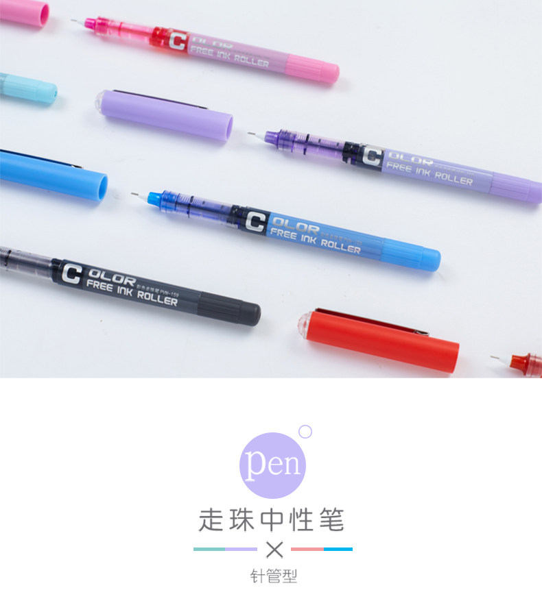 白雪0.48直液式走珠笔学生用中性笔多色彩色中性笔考试笔水彩笔