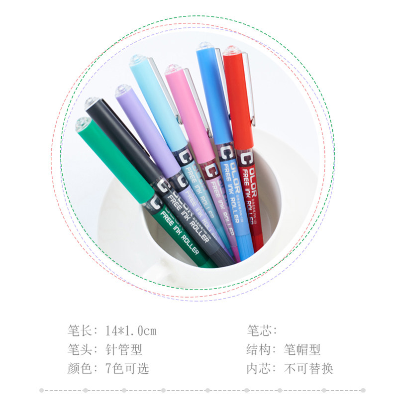 白雪0.48直液式走珠笔学生用中性笔多色彩色中性笔考试笔水彩笔 x1