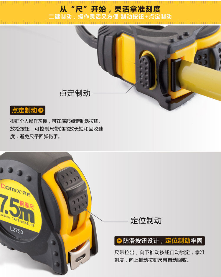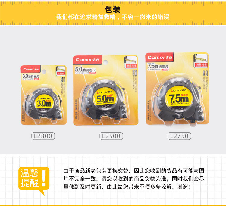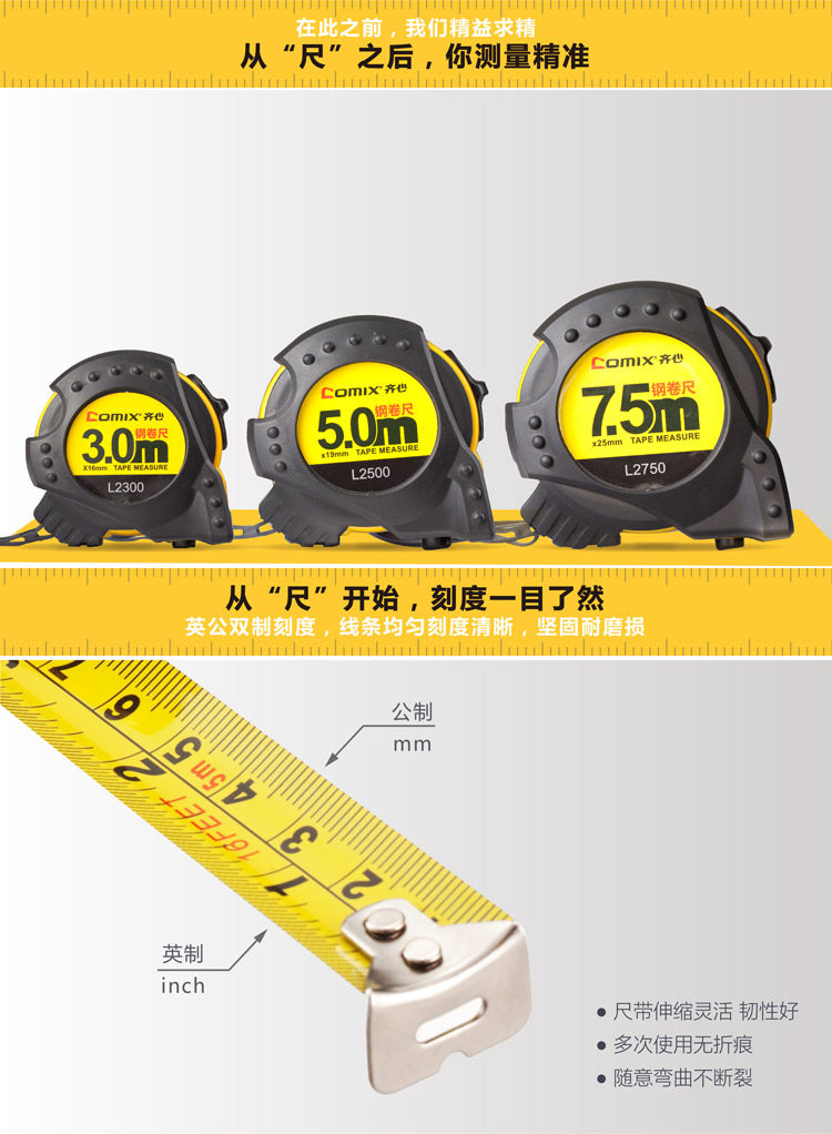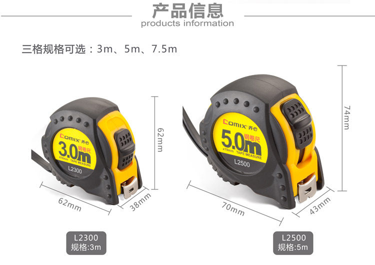 齐心L2750卷尺盒尺高精度不锈钢尺子木工钢卷尺7.5米超